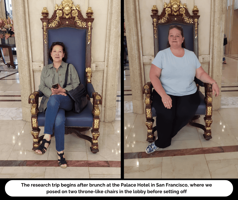 Kate Quinn and I went to San Francisco for a week to research the 1906 earthquake, Chinatown, grand mansions and anything else we could squeeze into our time. Yes, research often sends authors off in a different direction than what we originally planned, or gives us ideas for adding detail and authenticity to the story. The great thing about two historical novelists on a research trip together is that you don't have to worry that your travel companion is getting bored of museums!